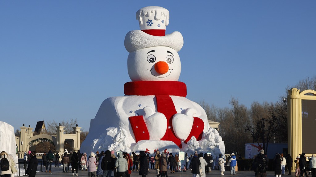 黑龙江哈尔滨:“雪人先生”亮相迎客