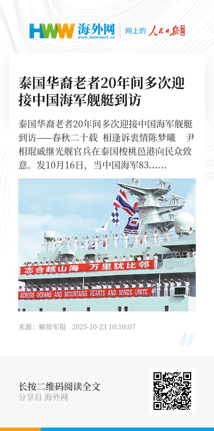 泰国华裔老者20年间多次迎接中国海军舰艇到访——