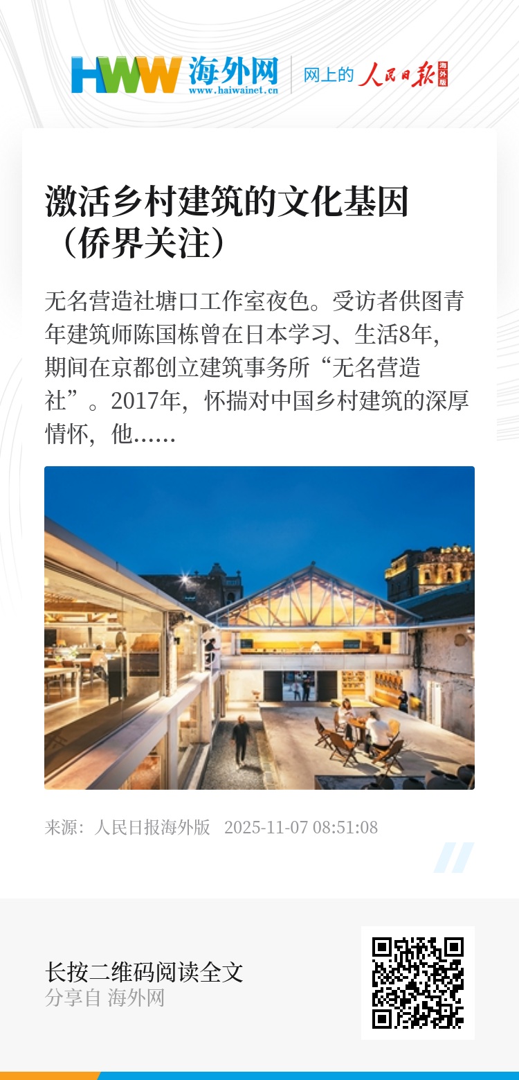 青年建筑师陈国栋曾在日本学习、生活8年,期间在京都创立建筑事务所“无名营造社”。2017年,怀揣对中国乡村建筑的深厚情怀,他携团队归国,先后在贵州省黔东南苗族侗族自治州与广东省开平市塘口镇设立工作室,深耕乡村建筑营造及研究,探索适应新时代的乡土建筑实践。