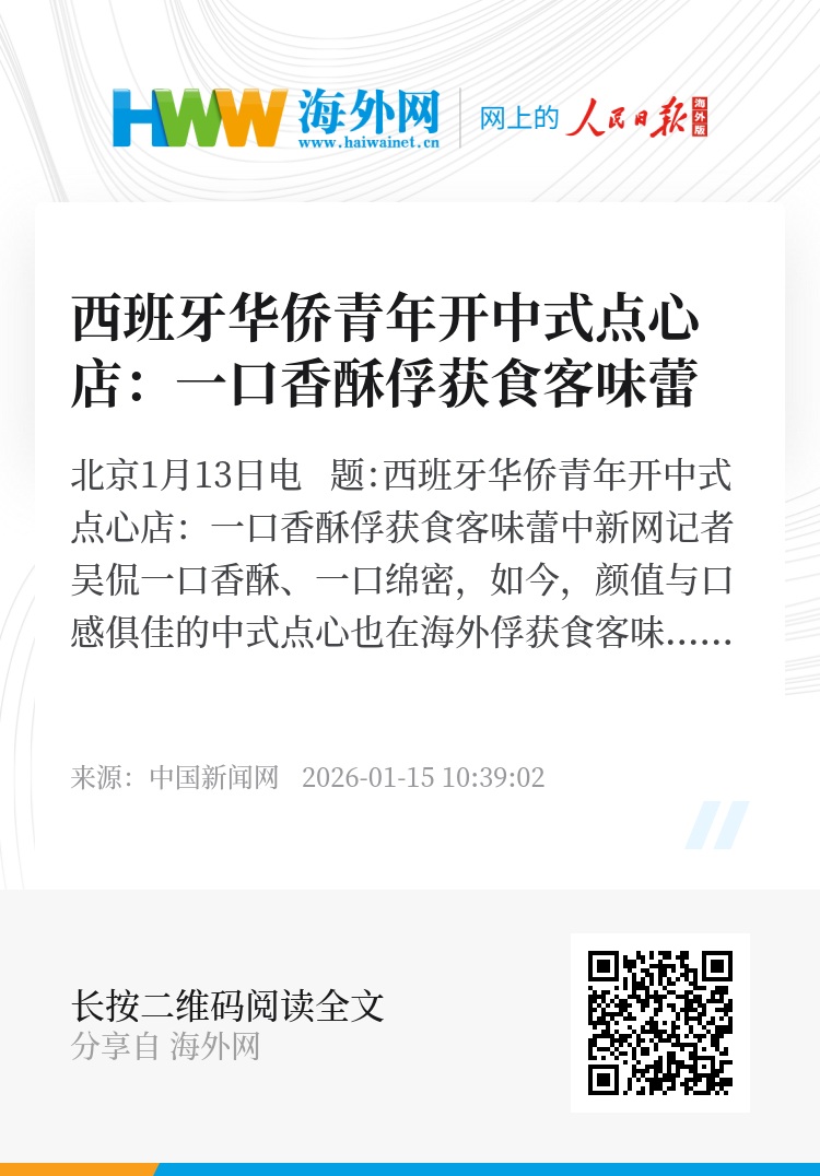 中新网北京1月13日电 题:西班牙华侨青年开中式点心店:一口香酥俘获食客味蕾