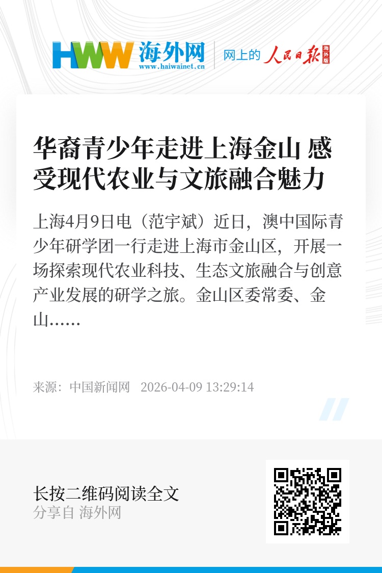 从现代农业的前沿阵地到乡村振兴的生态样本,再到创意文旅的崭新地标,华裔青少年在心中留下独特而鲜活的“金山印象”。